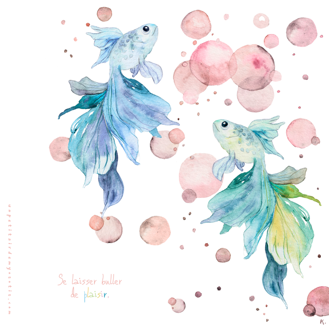 Carte-poème Poissons "se laisser buller de plaisir"